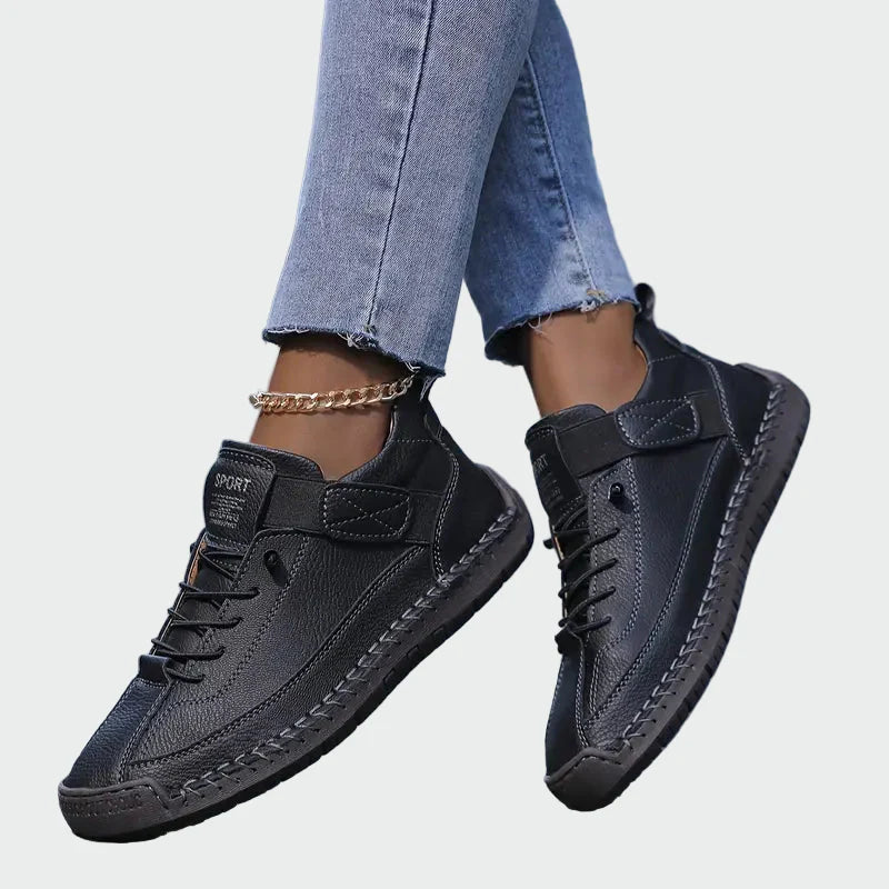 A pair of orthopaedic sneakers that combine comfort and support for all-day wear. Their ergonomic design offers stability and reduces foot strain, while their lightweight construction provides ease of movement. Ideal for everyday use and prolonged standing.
