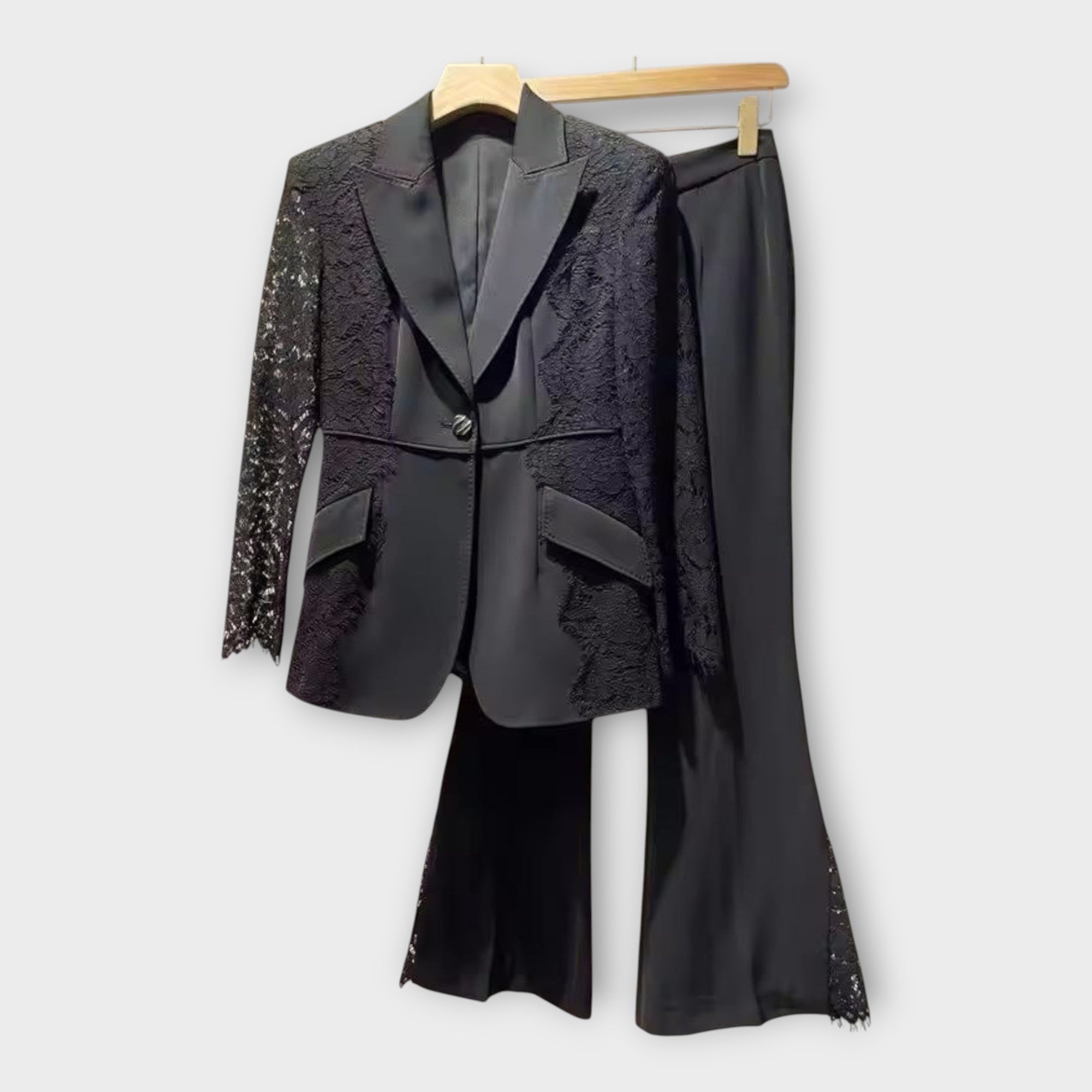 Elegant jacket and trouser set with lace details