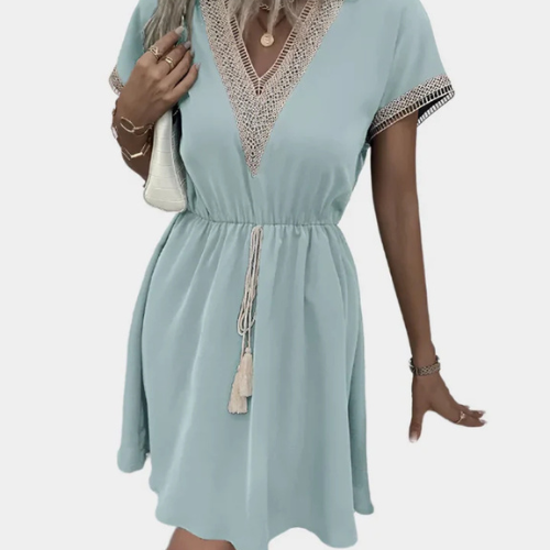 Romantic Boho Dress with Belt and V-Neck